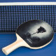 Paddles de ping pong personalizados con un macabro ilustracion de un rosa negro al estilo gótico/emo con sangre goteante roja en sus pétalos. Un fondo de color negro gris, con un color blanco roto, que destaca este misterioso e interesante rosa de fantasía.