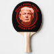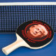 ¡Aquí está una paleta divertida del ping-pong que será un arrancador real de la conversación! Tiene un retrato artístico de Donald Trump en una frontera roja circular del marco. El texto curvado por encima y por debajo de la imagen dice que "haga el PING-PONG GRANDE otra vez". La imagen se repite en ambos lados.