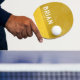 Color de la mostaza molesto mesa-tenis-pádel personalizado con los nombres del jugador