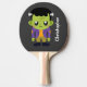 Ping pong paddle con una divertida imagen de Halloween mostrando un monstruo Frankenstein verde.