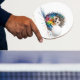 Ein freundlicher Igel in bunten Farben, eine kindliche Zeichnung eines Igels, mit Tusche und Kreide, gekleckst und geschmierte ist die Farben als Stil und Effekt des lustigen Bildes.