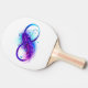 Símbolo infinito con una hermosa pluma pintada de color violeta y azul brillante sobre fondo blanco.