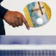 Pala De Ping Pong Jesús que cuelga de una cruz cristiana de la