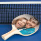 Foto moderna y de moda Ping Pong Paddle. Diseño que incluye tu foto individual favorita y guión tipográfico ''GAME ON''. Personalice con un nombre o texto familiar.