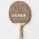 Personalizado ping-pong-pádel con su nombre en un estilo de letra marrón fresco con sombra negra, sobre la imagen de fondo de cuero marrón... una fresca identidad visual para jugadores elegantes.