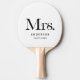 Este elegante y minimalista paddle de ping pong dice "Mrs." en un moderno y lujoso tipo de letra en blanco y negro, y también tiene un lugar para su apellido y fecha boda.