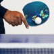 Pala De Ping Pong Mariposas doradas sobre fondo azul