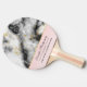 Paddle personalizado de ping pong chamion con un elegante y moderno patrón de mármol. Mármol blanco, negro y gris ahumado con cintas delgadas de giros de imitación de oro a lo largo del patrón. Fondo de gradiente rosa claro bajo el patrón de mármol.