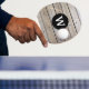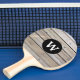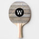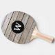 Personalizado monocasco parqué ping pong. ¡Te encantará este estilo rústico y moderno con tu monograma! Letra blanca inicial en un círculo negro y fondo de listones de madera de pino.