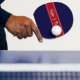 Pala De Ping Pong Monograma con nombre de cinta roja de arándano azu