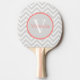 La paleta de ping pong monocasco de chevron de coral presenta un diseño de un patrón de chevron gris claro con un emblema circular delineado en el coral. También hay artículos adicionales disponibles con este diseño. Póngase en contacto conmigo directamente para obtener ayuda sobre la personalización.
