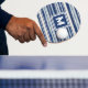 Pala De Ping Pong Monograma de rayas azules y blancas