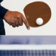 Pala De Ping Pong Monograma de textura de madera marrón oscura
