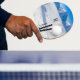 Esquí, estación del invierno, montañas y equipo del esquí en la nieve