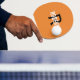 Moderna plataforma de ping pong con fondo naranja, monograma negro y nombre tipográfico blanco. Personaliza con tu nombre y monograma.