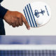 Esta imagen muestra el nombre de un barco, y el ancla sobre un fondo de rayas azul marino y blanco.