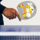¿Traes el calor a tus partidos de ping pong? Este divertido diseño presenta una cara feliz amarilla lista para la batalla con accesorios de ninja.