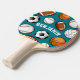 Una paleta de ping-pong verde azulada personalizada con temática deportiva para ese atleta estrella que es bueno en todos los deportes incluyendo el maravilloso juego de ping-pong.