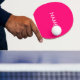 Monograma de texto de nombre personalizado fucsia rosa minimalista y pádel de Ping Pong blanco