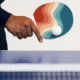 Olas de estilo retro ilustracion geométrico con rayas rojas, naranjas, azules y turquesas