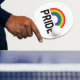 Este diseño presenta la palabra orgullo bajo un arcoiris colorido.