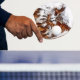 Hermosa cabeza de lechón eurasiática procesada digitalmente en los colores marrón y blanco
