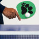 Dibujar con siete dedos (polidáctil) sobre fondo verde. Huella felina de una pata derecha con tres dedos más pequeños en el "pulgar"