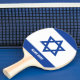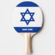 Paleta de encargo del ping-pong de los tenis de mesa de la bandera israelí. Idea personalizada del regalo del juego de los deportes para los jugadores de los tabletennis. Bandera de Israel con la estrella judía del diseño de David personalizada con nombre o el monograma. Color de fondo adaptable. Haga uno para sus amigos, niños, trabajador del co, colega etc. También diversión para el palo/el fiesta de Mitzvah de la barra.