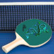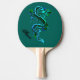 Paleta de encargo del ping-pong hecha en trullo, con los gráficos de un dragón azul y verde del estilo chino, en ambos lados. Personalice el texto negro para leer lo que usted quiere. Hace una gran idea para un regalo.
