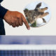 Paleta del ping-pong que ofrece una foto de una jirafa.