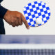Diseño de patrones de cuadrados geométricos de verificación azul y blanco