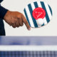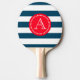 Patrón marino rayado azul y blanco con forma de círculo rojo decoración monograma
