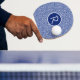 Este elemento presenta un patrón y un espacio geométrico abstracto en azul y blanco para su inicial.