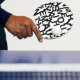 Patrón abstracto hecho con letras de color negro. Arte tipográfico moderno, urbano, muchas letras de aspecto desordenado, caótico y denso.