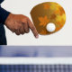 Pala De Ping Pong Patrón otoñal con hojas de arce en caída y bokeh