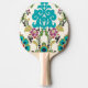 Pala De Ping Pong Patrones florales Damask Plum Turquoise