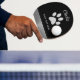 Pala De Ping Pong Paw de perro plateado sobre fondo negro