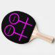 Este impresionante Ping Pong Paddle está diseñado para lesbianas. Cuenta con dos símbolos femeninos rosados uno al lado del otro. El fondo es negro y hay un texto rosa personalizable dentro de cada uno de los símbolos para poner nombres.