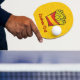 Icono de patatas fritas. Iconos de contorno de comida basura fondo de patrón amarillo. Texto personalizado.