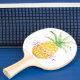 Este pequeño Ping Pong Paddle está decorado con una piña pintada a mano en tonos amarillos y verdes con tipografía rosa. Fácilmente personalizable con nuestro nombre. Porque creamos nuestra propia obra de arte no encontrarás esta imagen exacta de otros diseñadores. Acuarela original © Michele Davies.