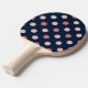 Este es un azul marino con palas de ping pong de polka rosa. El diseño fue creado con arte generativo. El patrón está en la parte delantera y trasera de la plataforma de ping pong.
