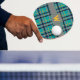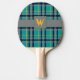 Una rica base turquesa está atravesada por bandas de azul marino profundo, gris sólido y naranja luminoso, que combina colores y contrastes a la moda con un estilo clásico y acogedor. Personalizar el monograma de esta paleta de ping pong con su inicial para marcarlo como propio.