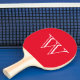 Ping pong paddle mostrado en rojo con una letra monograma.