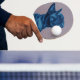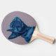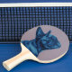 Un murciélago de ping pong con una francesa azul mirando hacia el cielo, ideal para los amantes del perro o del Bulldog francés.