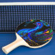 El cuerpo azul brillante con plumas coloridas contra el negro crea un único pájaro funky.