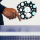 Estos pájaros de Ping Pong presentan círculos oscuros de color blanco a azul sobre un fondo negro como mirar hacia arriba y captar indicios de un hermoso cielo azul. ¡Apunten al cielo! Un moderno y divertido palillo retro para personalizar con Iniciales. Esta imagen es fotografía original de JLW_PHOTOGRAPHY.