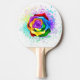 Rosa grande y floreciente con pétalos de arco iris sobre fondo blanco, pintado con salpicaduras de pintura colorida y brillante. 3.ª