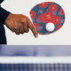 Las grandes flores rojas escarlata, azul marino medio y morado real son como las margaritas repartidas por un rico fondo verde de jungla para crear un colorido patrón floral que es perfecto incluso para el otoño. Personalizar el monograma de esta paleta de ping pong con su inicial para marcarlo como propio.