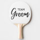 Voeg wat flair toe aan je vrijgezellenfeest met ons op maat gemaakte zwarte 'Team Groom' pingpongpalet! Dit stijlvolle palet is ontworpen om je teamgeest te tonen en een vleugje plezier toe te voegen aan je speciale gelegenheid. Personaliseer het met namen of initialen voor een extra speciale touch. Gemaakt van hoogwaardige materialen voor optimale grip en snelheid, is dit palet perfect voor een spannend potje pingpong. Of je nu een gepassioneerde speler bent of gewoon wat plezier wilt hebben, ons 'Team Groom' palet is een geweldig cadeau-idee voor vrijgezellenfeesten en andere bijeenkomsten.