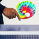 La imagen es un diseño de tinte rojo con corbata de arcoiris